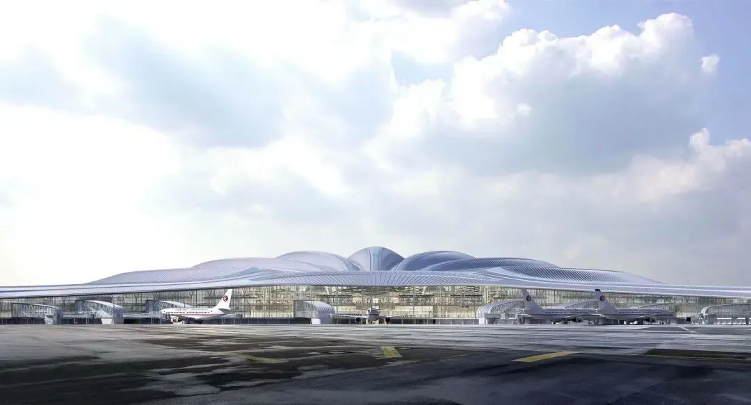 ✈️ T3航站楼工程完了全面封顶合拢,金属屋面及幕墙工程终端使命正在推动,机电装配和消散装修施工渐渐开展。